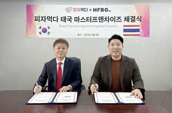 ㈜피자이노베이션(대표 김철운)이 운영하는 1인 피자 전문점 “피자먹다”가 2월 3일 HFBG(해피패밀리비즈니스그룹)과 태국 마스터프랜차이즈 계약 체결을 완료하고 본격적인 해외시장 진출에 나선다고 밝혔다.